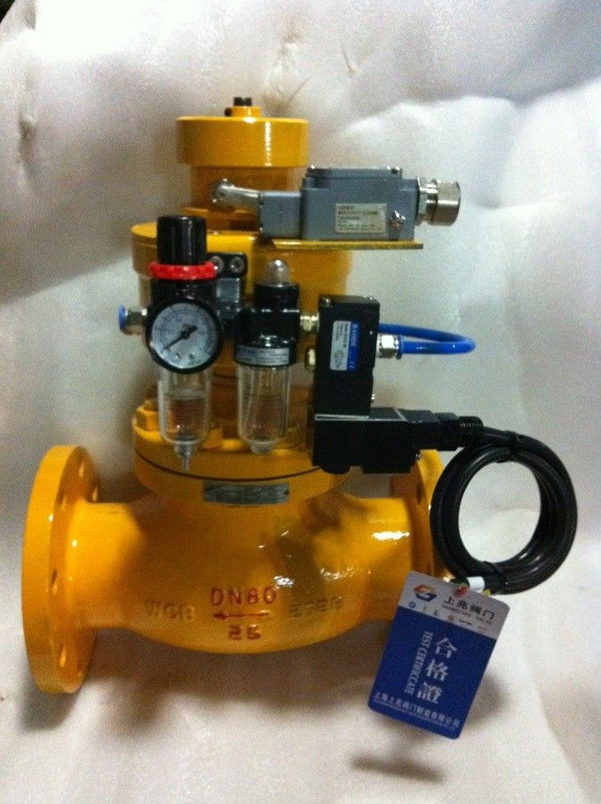 液氨專用氣動(dòng)緊急切斷閥作用原理及結(jié)構(gòu)說明: 1、單作用式工作原理:閥門在無外壓力操作情況下,閥瓣處于常閉狀態(tài),在管道或貯罐系統(tǒng)上使用時(shí),靠電源和氣源的壓力將閥門打開,在氣路的壓力使用下閥門處于開啟狀態(tài),當(dāng)需要關(guān)閉閥門時(shí),可將電源或氣源壓力泄掉,閥門即自動(dòng)關(guān)。 2、閥瓣關(guān)閉時(shí),壓力是依靠打開泄壓閥來實(shí)現(xiàn)。 3、常開式可采用單作用代替或按要求訂做。 4、雙作用式工作原理:當(dāng)控制器按事先編好的程序?qū)δ硞€(gè)電磁換向閥輸出一個(gè)電信號(hào),該電磁換向閥動(dòng)作,使帶壓儀表氣源通過電磁換向閥的切換進(jìn)入氣動(dòng)執(zhí)行機(jī)構(gòu)的氣缸下腔推動(dòng)活塞向上運(yùn)動(dòng),活塞帶動(dòng)閥桿,閥桿提動(dòng)閥芯使閥門開啟,切斷換向閥電信號(hào),使活塞反向運(yùn)動(dòng)使閥門關(guān)閉,這種閥門配置稱為常閉式。 .jpg)