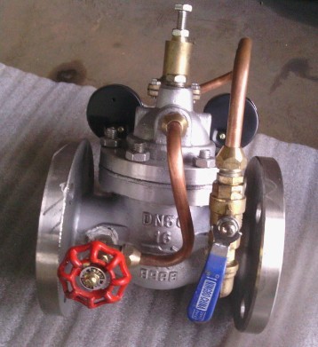 200X不銹鋼減壓閥由主閥、導(dǎo)閥、針閥、球閥、微型過濾器和壓力表組成水力控制接管系統(tǒng)。使用時,當(dāng)調(diào)定出口壓力后,能自動保持穩(wěn)定出口壓力。本產(chǎn)品利用導(dǎo)閥自力控制,不需要其它裝置和能源,保養(yǎng)簡便,壓力控制準(zhǔn)確度高,受進(jìn)口壓力和流量影響小,減壓穩(wěn)壓可靠。廣泛用于高層建筑、生活區(qū)等供水管網(wǎng)系統(tǒng)及城市供水工程。 當(dāng)閥門從進(jìn)口端給水時,水流過針閥進(jìn)入主閥控制室,出口壓力通過導(dǎo)管作用到導(dǎo)閥上。當(dāng)出口壓力高于導(dǎo)閥彈簧設(shè)定值時,導(dǎo)閥關(guān)閉??刂剖彝V古潘?,此時主閥控制室內(nèi)壓力升高并關(guān)閉主閥,出口壓力不再升高。 當(dāng)閥門出口壓力降到導(dǎo)閥彈簧設(shè)定壓力時,導(dǎo)閥開啟,控制室向下游排水。由于導(dǎo)閥系統(tǒng)排水量大于針閥的進(jìn)水量,主閥控制室壓力下降。進(jìn)口壓力使主閥開啟。在穩(wěn)定狀態(tài)下,控制室進(jìn)水、排水相同,主閥開度不變,出口壓力穩(wěn)定。 調(diào)節(jié)導(dǎo)閥彈簧即可設(shè)定出口壓力。 三、200X不銹鋼 減壓閥--主要技術(shù)參數(shù):